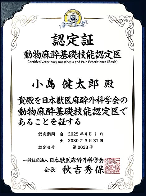 - 動物麻酔基礎技能認定医