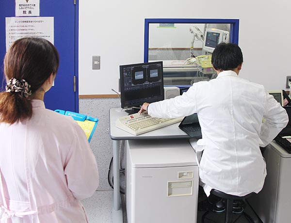 暗視カメラ搭載の生体監視モニターを導入し、眠っている動物を起こすことなく状態を監視し、夜間、動物の負担を軽減しながら獣医師にかかる労力を最低限にする工夫をしています。